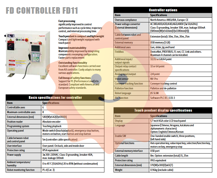 NACHI emphasizes that all documents (including operating instructions) must be read before using the robot. If the robot is used in situations that may endanger life or cause personal injury, it needs to be carefully evaluated and communicated with the sales representative. Operators should receive appropriate training. The robot images displayed in the catalog are for illustrative purposes, and safety fences and equipment must be installed in accordance with local laws and regulations during actual use.