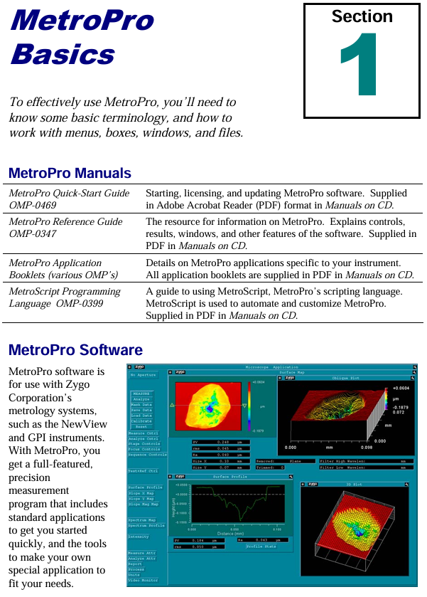 ZYGO MetroPro 9.0 Reference Guide (OMP-0347M)