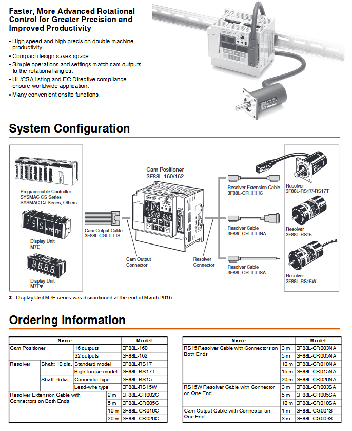 In the field of industrial automation, cam locators are the core components that achieve precise synchronization between the rotating shaft and the output switch signal. Traditional mechanical camshafts are limited by wear, difficulty in adjustment, and response speed, and have gradually been replaced by electronic cam locators. The OMRON 3F88L-160 (16 point output) and 3F88L-162 (32 point output) series are representative products in this field, with high resolution, high-speed response, and rich compensation functions, making them widely used in packaging machinery, presses, rotating workbenches, and specialized machine tools.