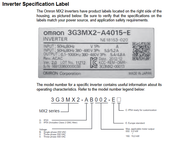 • OMRON 3G3MX2-A4015-E Inverter
