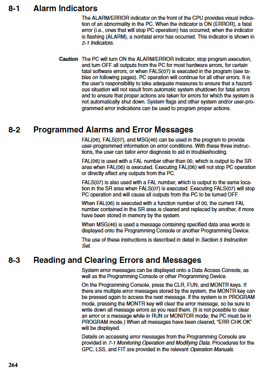 C200H provides self diagnostic function to quickly locate problems through CPU panel indicator lights and SR/AR area markings.