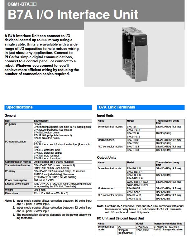 Specialized I/O units: such as analog I/O, temperature control unit, B7A interface unit, safety relay unit, etc.
