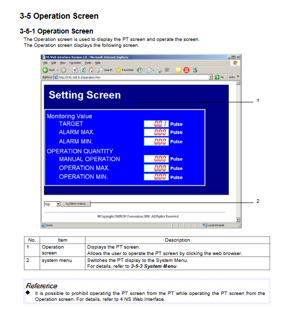 Reload Interval Operation Screen Automatic Refresh Interval (seconds) 3