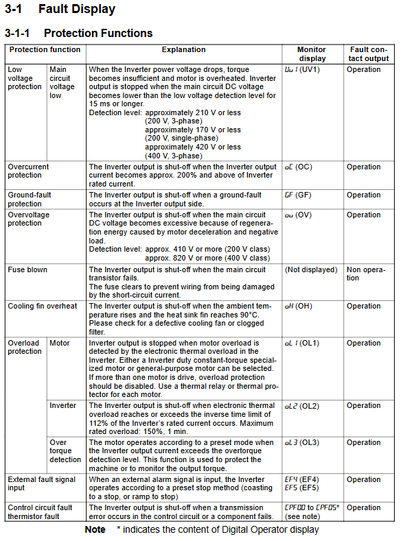 3G3KV has comprehensive protection functions, and correctly interpreting fault codes is the key to quick repair.