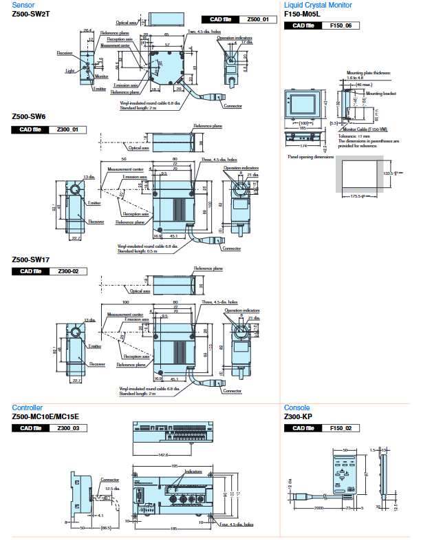 The following is a detailed specification of a typical line beam measurement system (such as OMRON Z500 series), covering key technical parameters such as measurement mode, distance, range, resolution, and light source type for different models.
