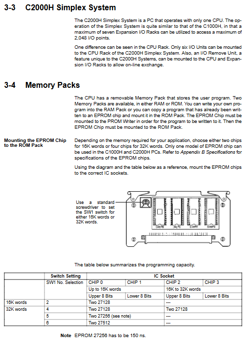 C1000H/C2000H uses a plug-in memory pack, which is inserted on the right side of the CPU. There are two types: