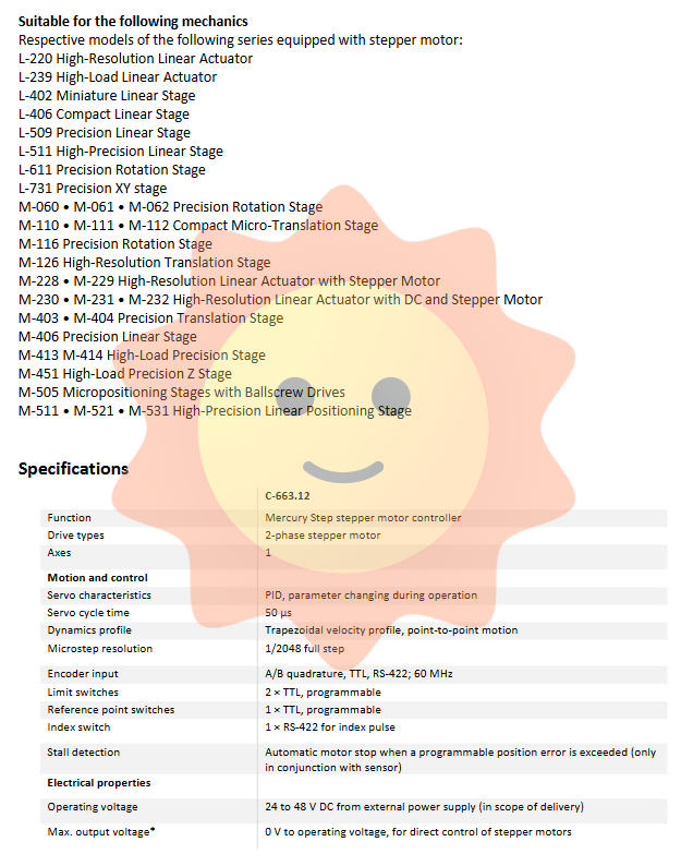 Smooth and low-noise movements are required for wafer probe stage, mask alignment, confocal microscope scanning, etc. The combination of 1/2048 micro steps and trapezoidal velocity curve significantly reduces vibration, which is beneficial for high magnification optical imaging.