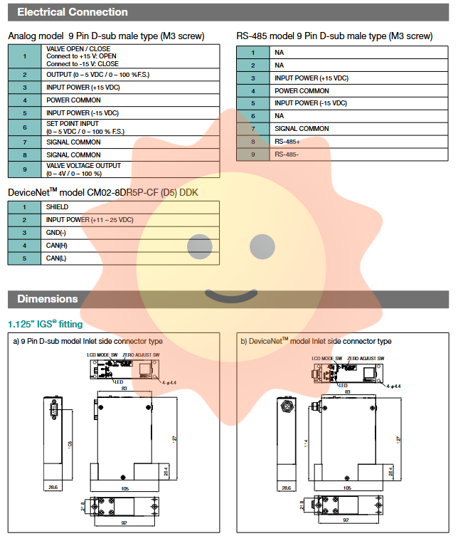 Power requirements: D-sub interface is+15VDC 90mA/-15VDC 60mA; DeviceNet ™ The interface ranges from+11VDC 300mA to+25VDC 150mA.