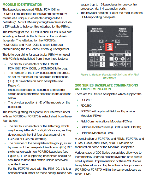 FCM/FBM universal substrate 2/4/8 horizontal/vertical -2 bits: single module/redundant pair FCM, or 2 FBMs (hard wired address 0, no ID dip code);