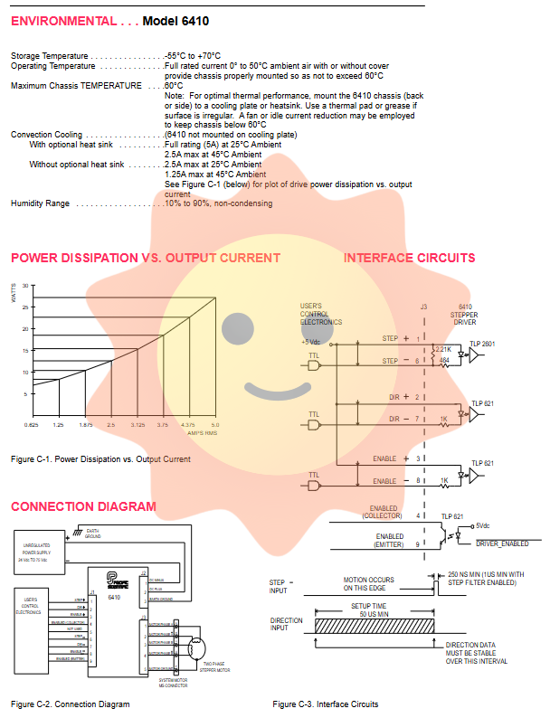 For standard 1.8 ° two-phase stepper motors, the 6410 supports step resolutions ranging from full steps (200 steps/rev) to 1/250 steps (50000 steps/rev).