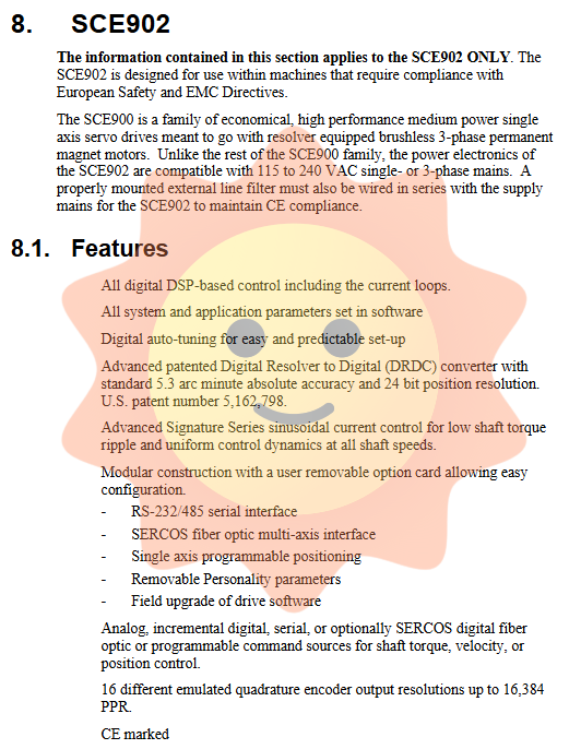 In the field of modern precision motion control, the performance, flexibility, and reliability of servo drives directly affect the overall performance of automation equipment. The SCE900 series is an economical, high-performance single axis servo drive family launched by Danaher Motion (formerly Pacific Scientific), designed specifically for three-phase permanent magnet brushless servo motors equipped with a rotary transformer (Resolver). On the basis of inheriting the mature control interface of SC900 series, this series of drivers has comprehensively upgraded the power electronics part, making it compatible with North American 480VAC and European 400VAC three-phase main power supplies, and meeting CE certification requirements. The SCE900 series adopts a fully digital DSP control architecture, integrating advanced digital rotary transformer conversion technology, sine wave current control, and modular tab design. It is widely used in industrial fields such as machine tools, packaging, textiles, robots, and specialized automation equipment.
