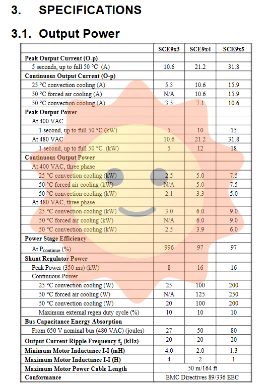 SCE905 is the most powerful model in the series, with a peak current of 31.8A and a continuous current of 15.9A (25 ° C convection or 50 ° C forced air cooling). The 50 ° C convection cooling drops to 10.6A. The peak power is 15kW at 400VAC and 18kW at 480VAC; the continuous power is 7.5kW (25 ° C convection) or 5.0kW (50 ° C convection). This model is suitable for heavy-duty servo presses, large flying saws, centrifugal test benches, etc. Size 370 × 160 × 229mm, weight approximately 9.5kg.