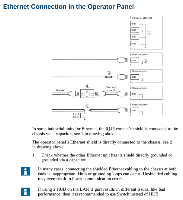 Isolation feature: The operation panel has electrical isolation for 24V DC power supply, but there is no electrical isolation between communication ports such as RS232, RS422/485, and USB. Only Ethernet connections have electrical isolation.