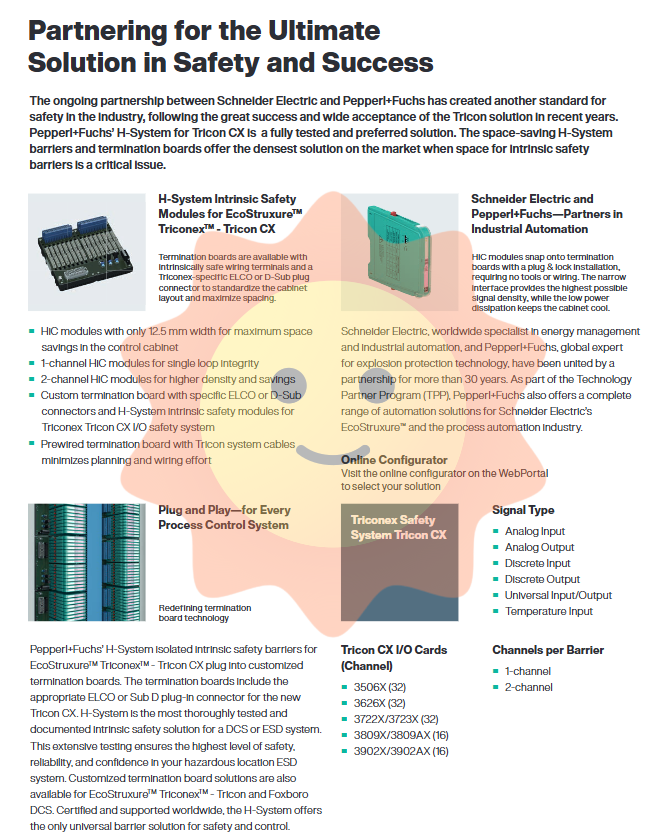 In order to meet the needs of different application scenarios, Pepperl+Fuchs provides highly compatible H-System module and terminal board solutions for various I/O cards of Tricon CX. The following will provide a detailed breakdown of the configuration details for each signal type.