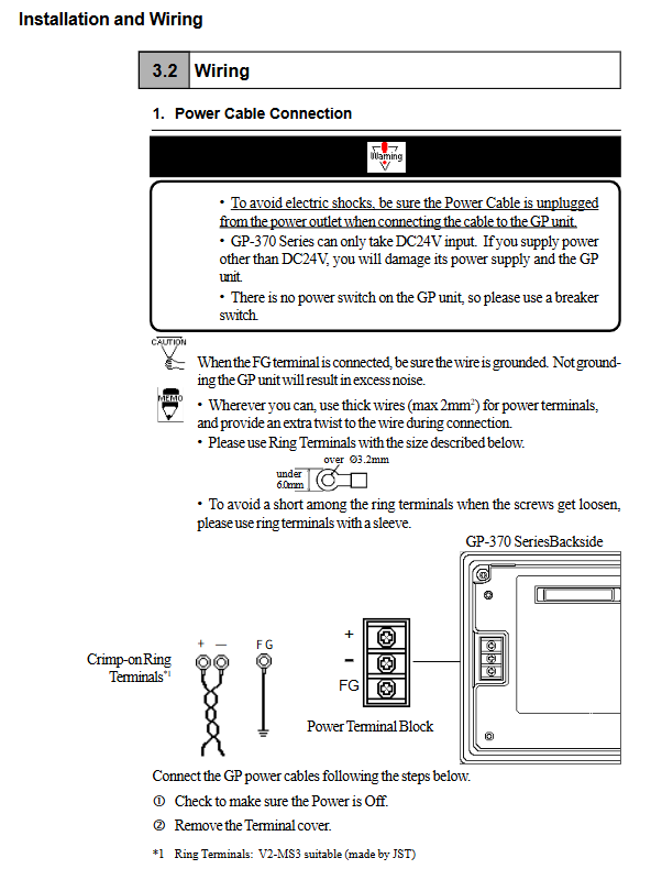 Although the front panel protection level of GP370 is IP65f, additional protective measures are still required if it is exposed to oil mist or low viscosity cutting oil for a long time. Non specified oil products may cause deformation or corrosion of the front panel plastic.