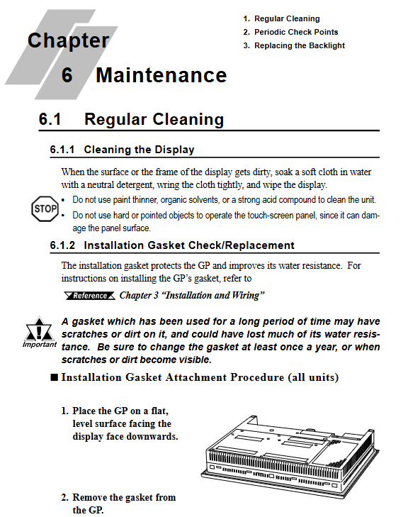 The installation of gaskets (PS400-WP00-MS for GP-2400, GP570-WP10-MS for GP-2500/2600) is the core of achieving IP65 protection. Before installation, it is essential to: