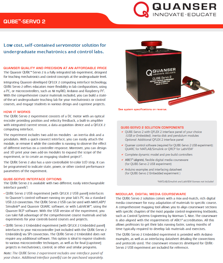 3.1 QUBE Servo 2 USB Experimental Edition
