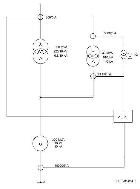 Transformer protection: Differential protection combined with backup overcurrent, suitable for two winding/three winding transformers.