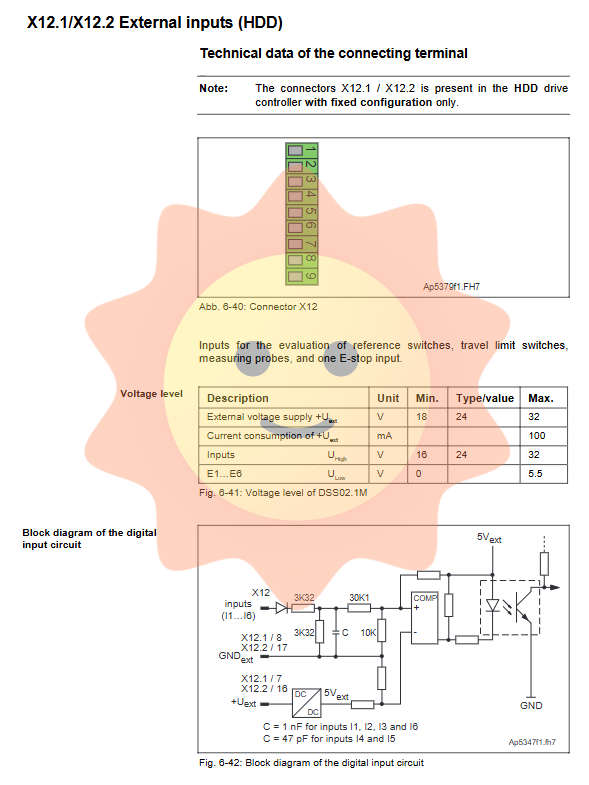 X12.1/X12.2: External digital input, used for reference switches, limit switches, emergency stop signals, etc.