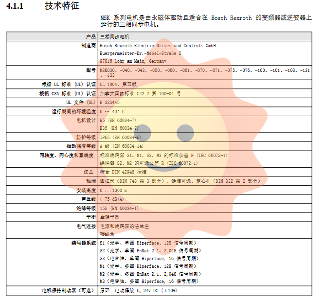MSK motor is a permanent magnet excitation three-phase synchronous motor, specially designed to be optimized for use with Rexroth frequency converters (such as the IndraDrive series). Its core features include: