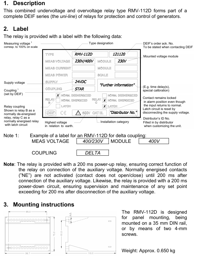 DEIF Undervoltage and overvoltage relay type RMV-112D