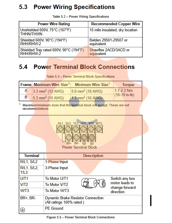 Dynamic braking resistor: used for rapid braking, selected according to the driver and voltage level (see Appendix E).