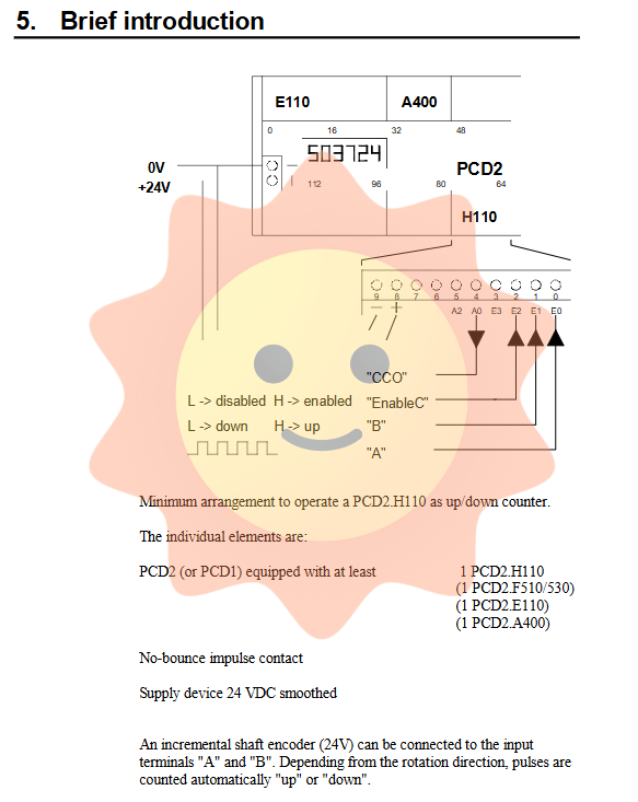 PCD2.H110 supports three measurement modes: frequency measurement, cycle length measurement, and pulse length measurement. All measurements are performed using two 16 bit counters, one as a time base counter (1 MHz or 1 kHz clock) and the other as a measurement counter. The measurement can be configured as single or automatic continuous.