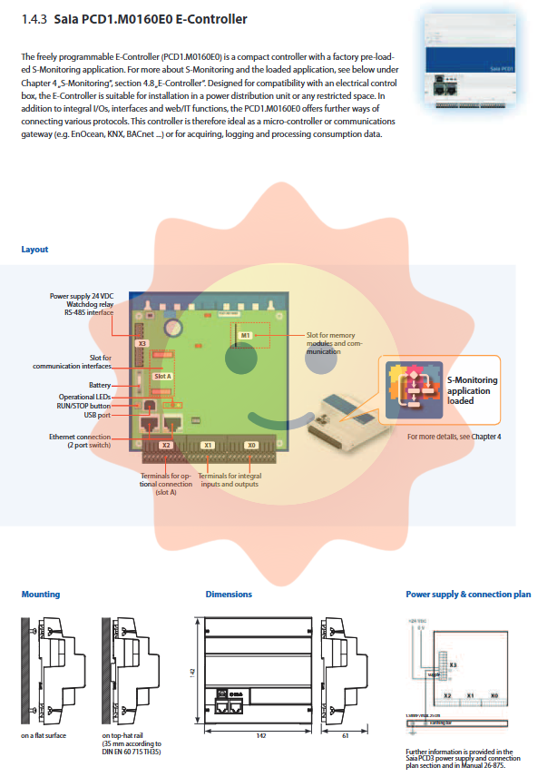 PCD1 E-Controller (M0160E0): An energy monitoring controller specifically designed for installation in distribution boxes, pre installed with S-Monitoring functionality.