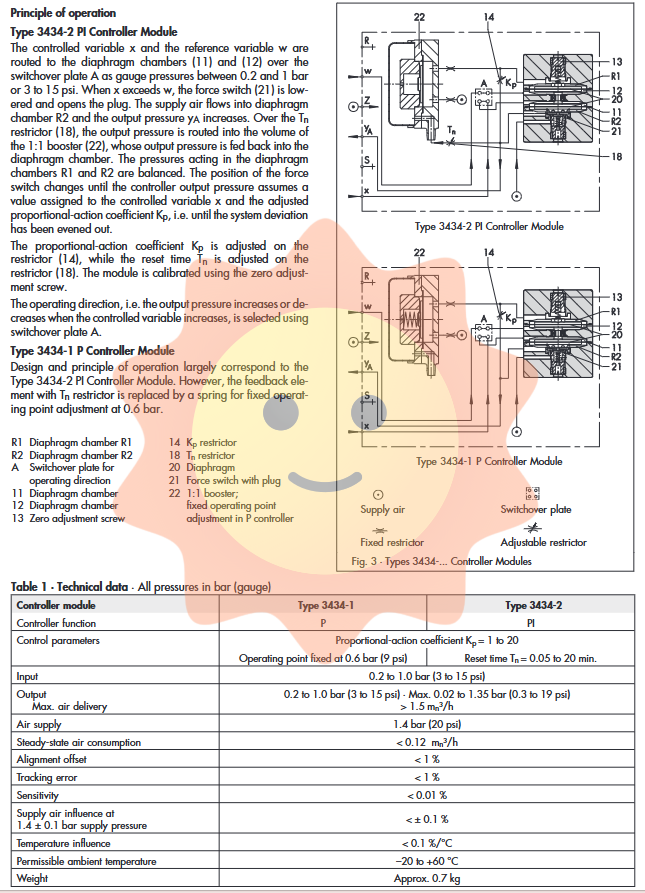 Order Text Format: Controller Module Type 3434-... Output 0.2 to 1 bar or 3 to 15 psi (specify output signal range, choose one of the two). For example, "Controller Module Type 3434-2, output 0.2 to 1 bar".