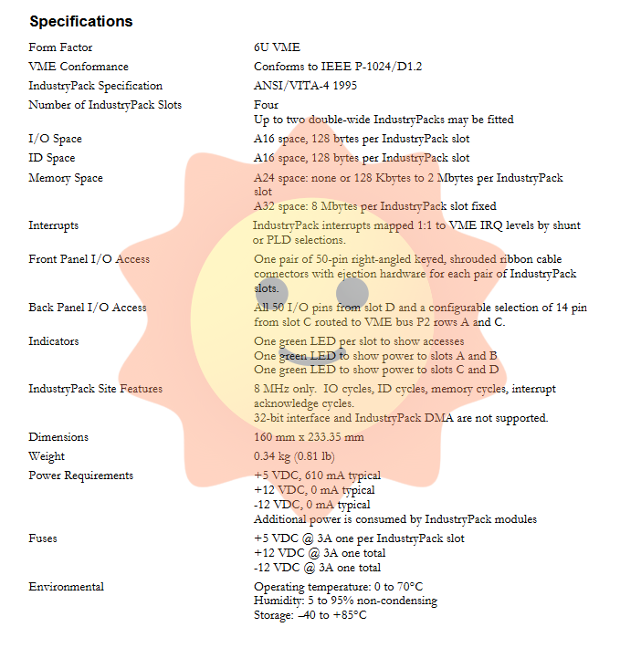 Industrial Automation: Connect IndustriePack modules such as A/D, D/A, digital I/O, counters, and motion control to expand the capabilities of VME controllers.