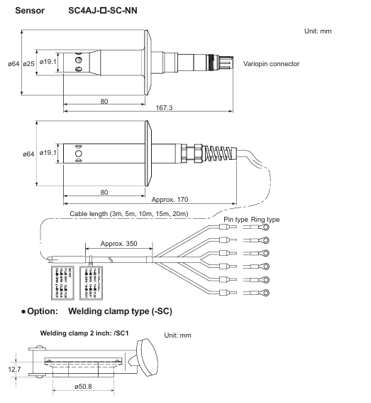 Welding socket type (- SA) requires straight type (/SA1) or 15 ° angle type (/SA2) welding socket, with fixed sensor length