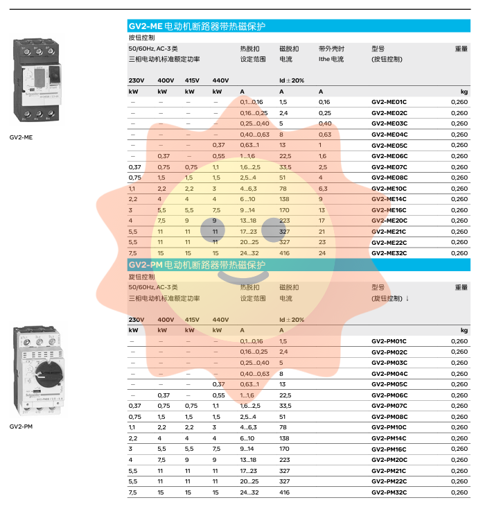 2.2 Imported TeSys motor circuit breakers: GV2/GV3 series