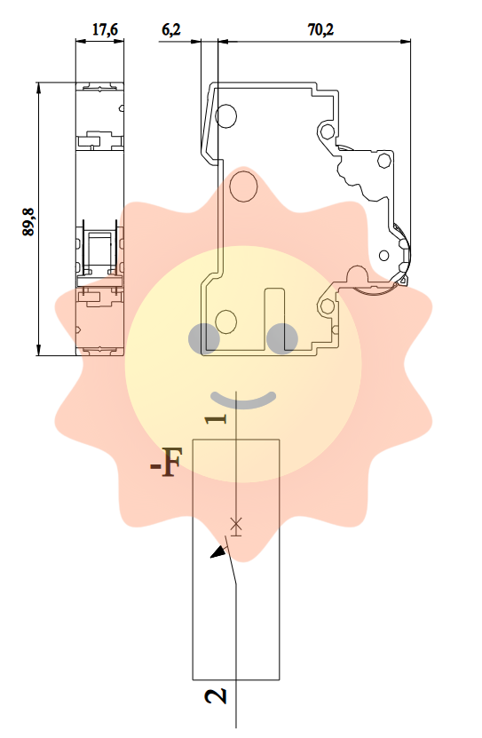 Insert the circuit breaker into the DIN rail and hear a "click" sound to indicate locking;