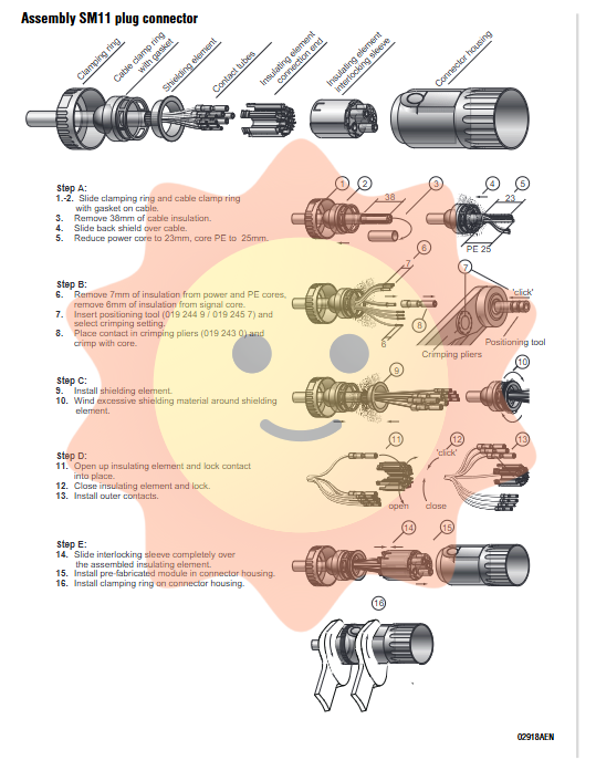 All plugs use crimping pins (DFS56's rotary transformer plug is welded). Special crimping tools must be used, and the stripping length is shown in Appendix Table 1. Incorrect assembled pins should be removed using a dedicated ejector. Finally, secure the plug with a locking ring.
