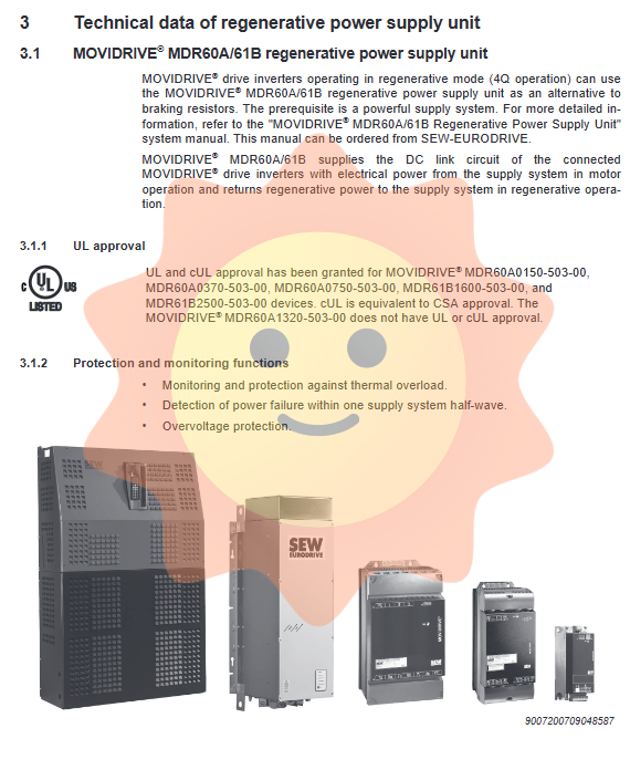 PROFIBUS DFP21B: 12 Mbaud, DP-V1 support, GSD file SEW_6003.GSD.