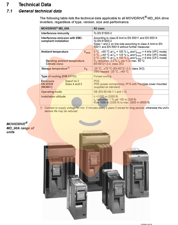 MOVIDRIVE ® The MD-60A frequency converter adopts a modular design and is divided into 5 different physical sizes (Size 1 to Size 5) according to power levels. This design ensures coverage from 0.15 kW small drives to 75 kW large drive applications.