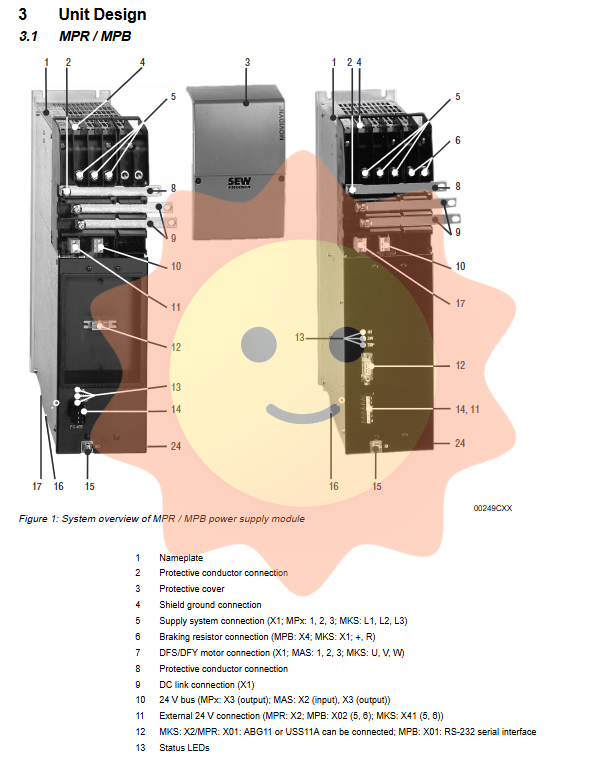 For example, a system containing MPB, MAS51A010 (with AIO11), and MAS51A030 (with API12) typically has a power consumption of about 54.5 W, with a maximum of 168.2 W, far exceeding the 240 W of the internal 24V power supply of MPB. In fact, 168W<240W can still be met, but it should be noted that the 110W of API is an extreme case. When the internal power supply is insufficient or communication and position detection need to be maintained when the main power supply is disconnected, an external 24V (18-30V) must be connected to X21 of MPR or X02 of MPB.