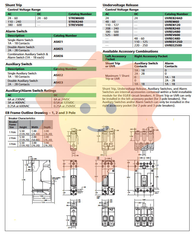 Right side: Up to 2 sets of auxiliary contacts (2A – 2B) or 1 set of alarm contacts (1A – 1B)