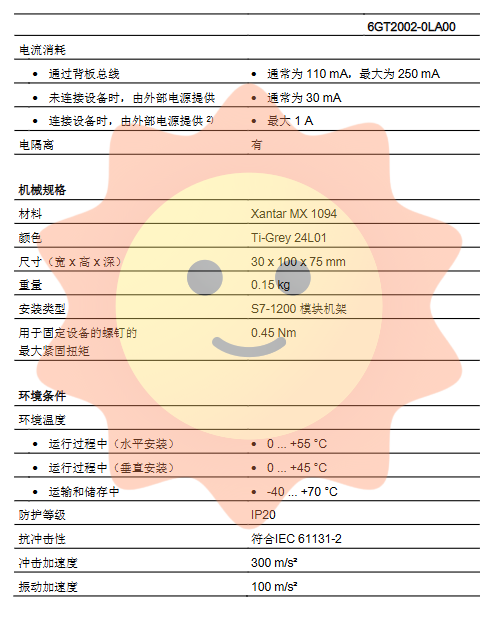 Backplane bus power supply: The module itself is powered through the S7-1200 backplane bus, without the need for external auxiliary power supply.