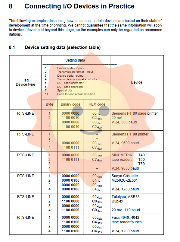 Cable: 6FC9 344-1B (V.24) or 6FC9 344-1Q (20mA)