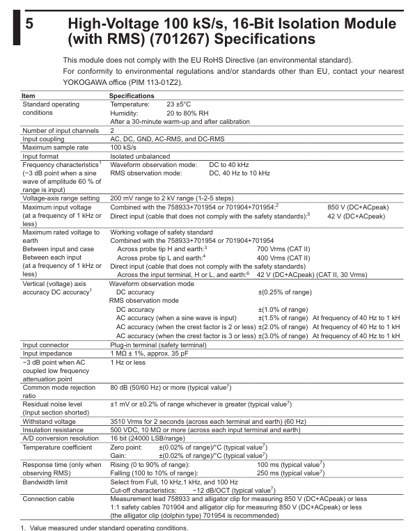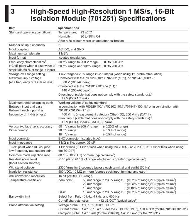 701250 (10 MS/s, 12 bits, isolated) 2-channel, DC-3 MHz bandwidth, ± 50 mV~200 V range, 2300 Vrms withstand voltage industrial high-frequency voltage signals (such as motor drive signals)