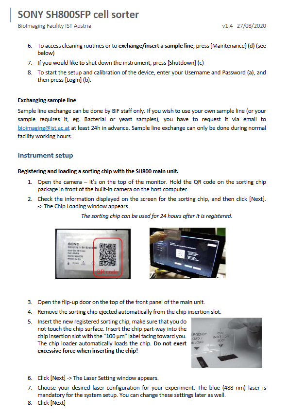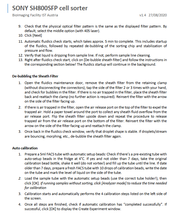 Before daily start-up: check the sheath fluid, waste liquid, DI water tank, and clean the sorting room.
