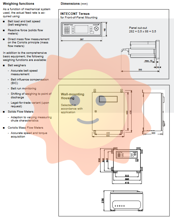 The standard order number for INTECONT Tersus is VEG 20650, and its suffix and software configuration determine the specific model. The following is a typical configuration: