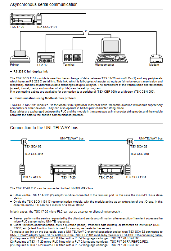 UNI-TELWAY is an early fieldbus introduced by Schneider Electric, which is based on master-slave or token mechanism and supports multi station communication. TSX 17 can be connected to UNI-TELWAY in two ways: