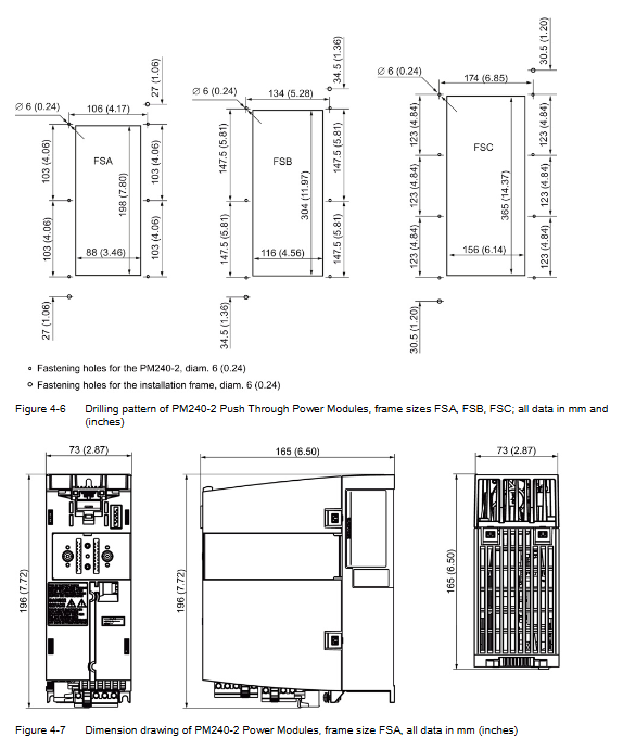 The PM240-2 and PM340 modules must be installed vertically (with the power terminals facing downwards) to facilitate natural convection cooling.