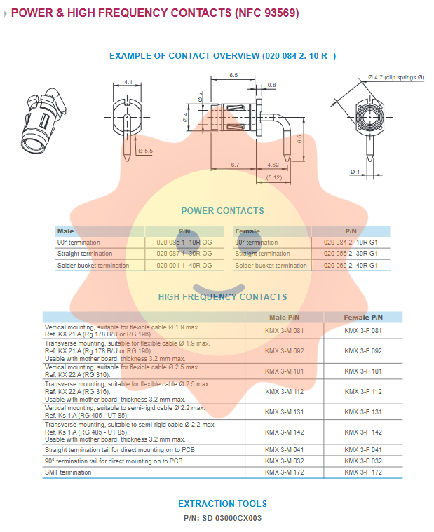 Power supply/high current guidance: 190 (female, vertical), 191 (male, horizontal)