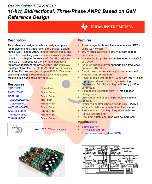TI 11kW GaN three-phase ANPC inverter