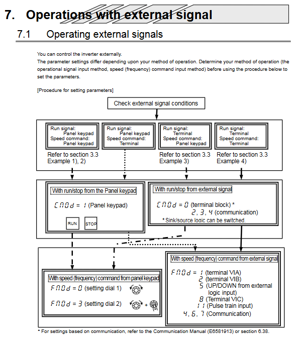 Frequency setting and operation instruction source (Cmod and Fmod):