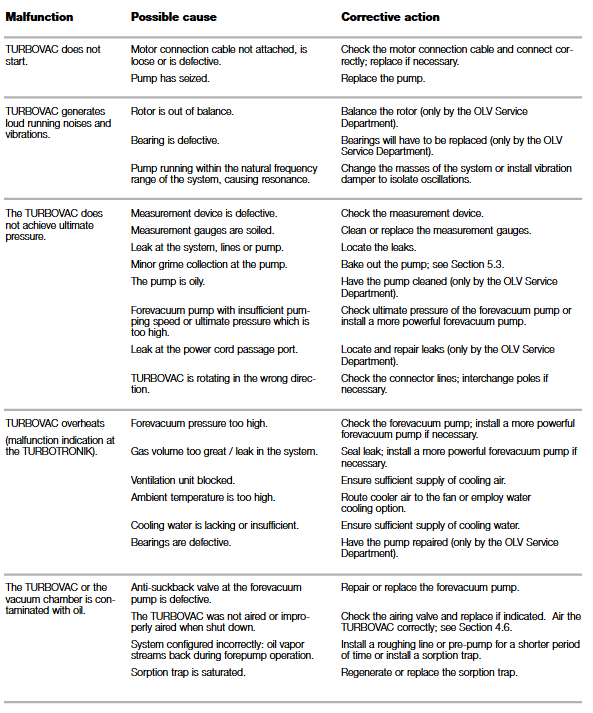 Rotor replacement: Based on the degree of thermal stress, it is recommended to replace the rotor components after 45000 to 100000 hours (only completed by Oerlikon Leybold Vacuum service).