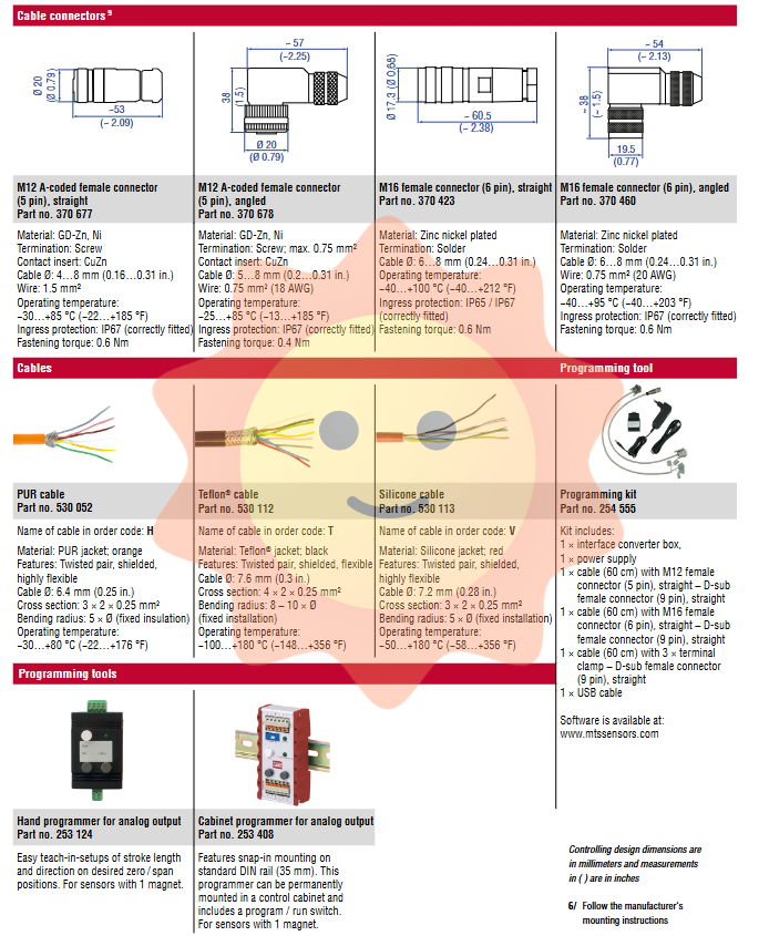 In addition, MTS Sensors also provides a programming kit (part number 254 555), which includes an interface conversion box, power supply, multiple connection cables (M12, M16, terminal clips), and USB cables. Users can download configuration software for free from the official website and set parameters through a PC.